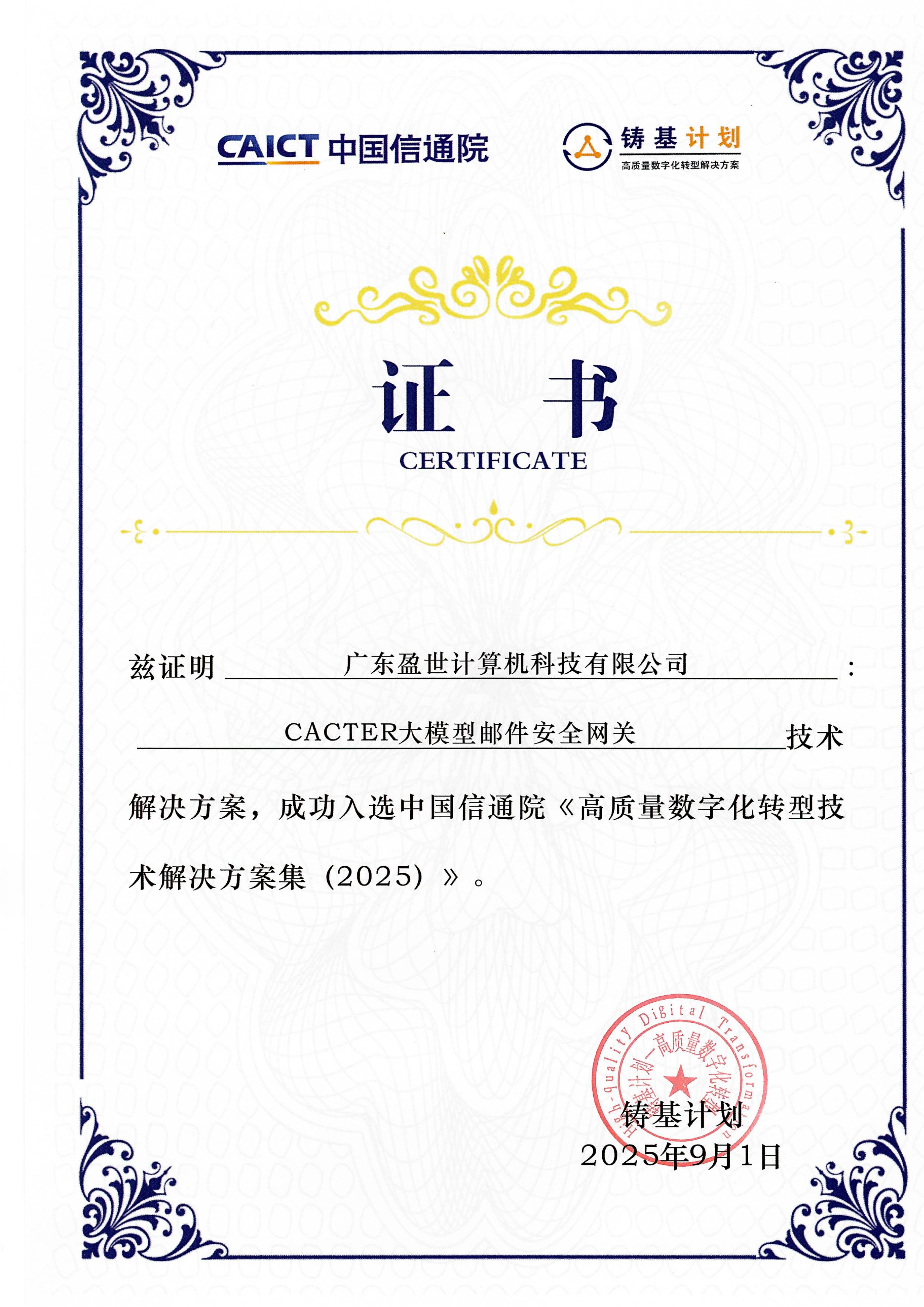 技术层面,CACTER 依托自研国产反垃圾引擎和国内头部企业级邮件安全大数据中心的研发创新,荣获多项发明专利与软件著作权,并与中科院、清华大学、奇安信、网易等机构开展深度合作,为客户提供从建立安全意识到数据保护的多层次邮件安全防护,为各领域提供更加安全、高效、自主可控的邮件安全解决方案。