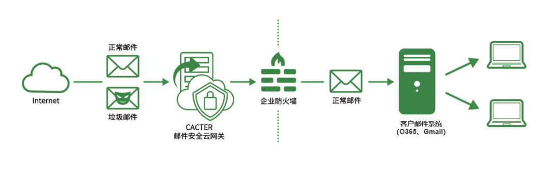 CACTER邮件安全云网关部署在云端,接入仅需5分钟,不仅避免消耗邮件系统硬件资源,更可减少消耗您的网络资源。