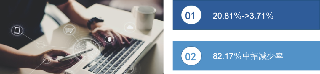 从Coremail数据来看,经过持续有计划的安全意识培训可以使各行业的平均钓鱼邮件中招率从20.81%降至3.71%,从另一个角度看,钓鱼邮件中招减少率也高达82.17%。