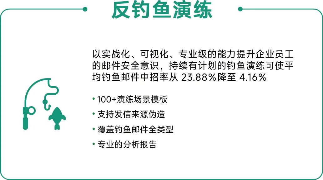 2025年钓鱼邮件借“信任链”(如仿冒同事、合作方消息)的内容激增,单纯的理论培训难应对复杂攻击,常态化实战演练是提升员工识别能力的关键。CACTER反钓鱼演练服务就提供了100+定制化真实场景,从“领导急要报表”到“合作方催签合同”,全面模拟各类高发钓鱼场景;让员工在实操中练习识别可疑链接、虚假话术的技巧,逐步提升风险敏感度。数据显示,通过持续演练可将员工中招率从23.88%降至4.16%,从源头降低误操作引发的安全事件概率。