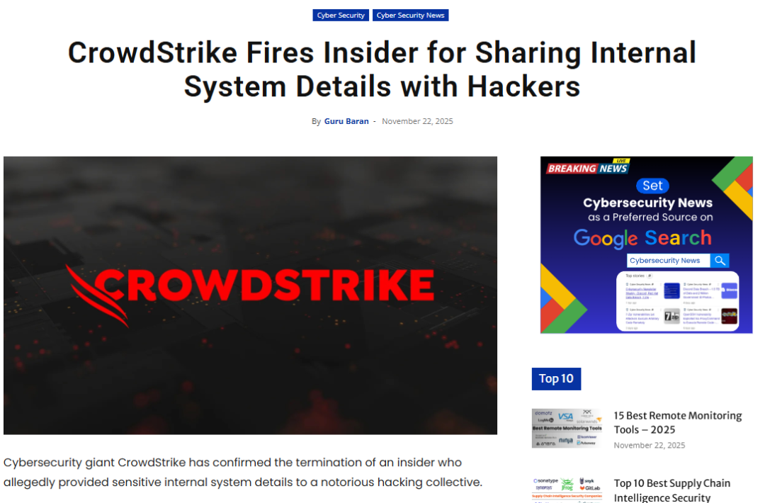 2.5 万美元策反内鬼!近期,网络安全巨头CrowdStrike遭遇内部信息泄露事件,攻击方“Scattered Lapsus$ Hunters”仅通过2.5万美元利诱内部员工便获取了企业内部仪表盘、Okta单点登录面板等敏感信息,并在Telegram公开传播。